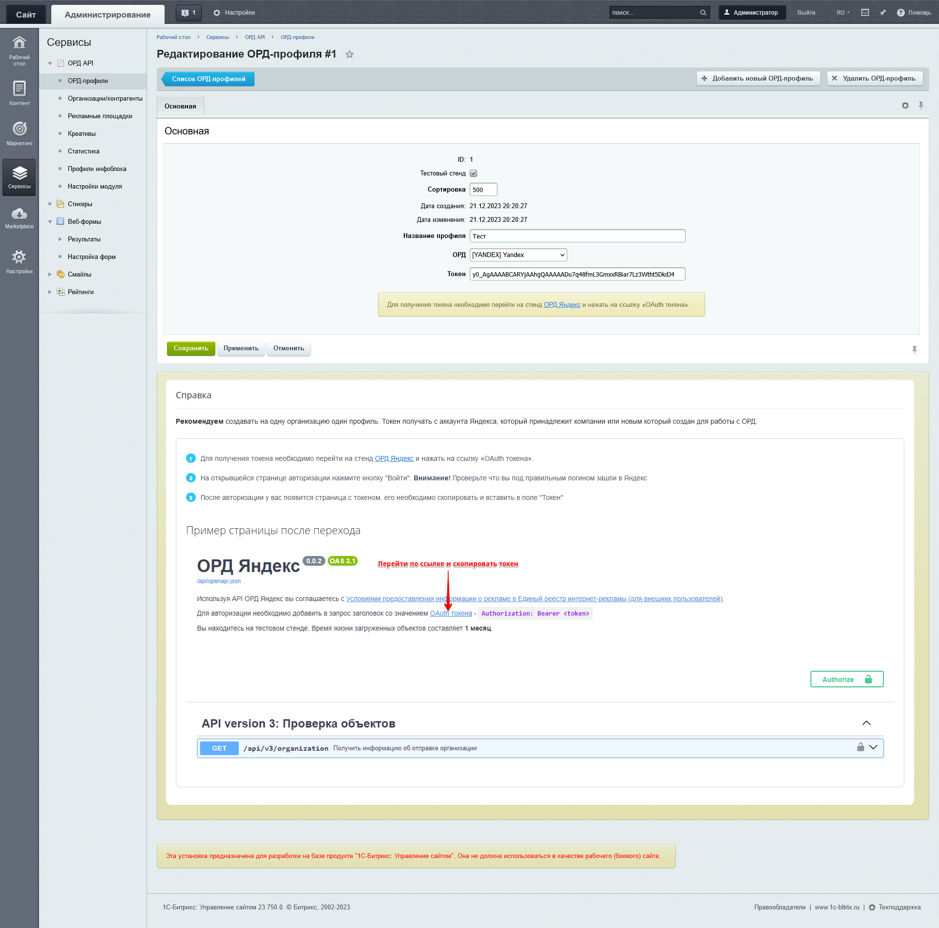 Модуль для создания объявлений в шапке сайта на CMS 1С-Битрикс