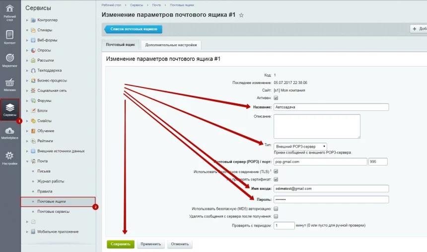 3. На основе отправленного письма модуль генерирует задачу на портале. Вложенные в письмо файлы прикрепляются к задаче.