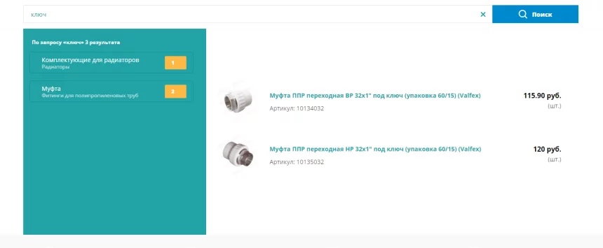 Наше окно поиска позволяет покупателю найти товары по своему запросу из нужной категории каталога.