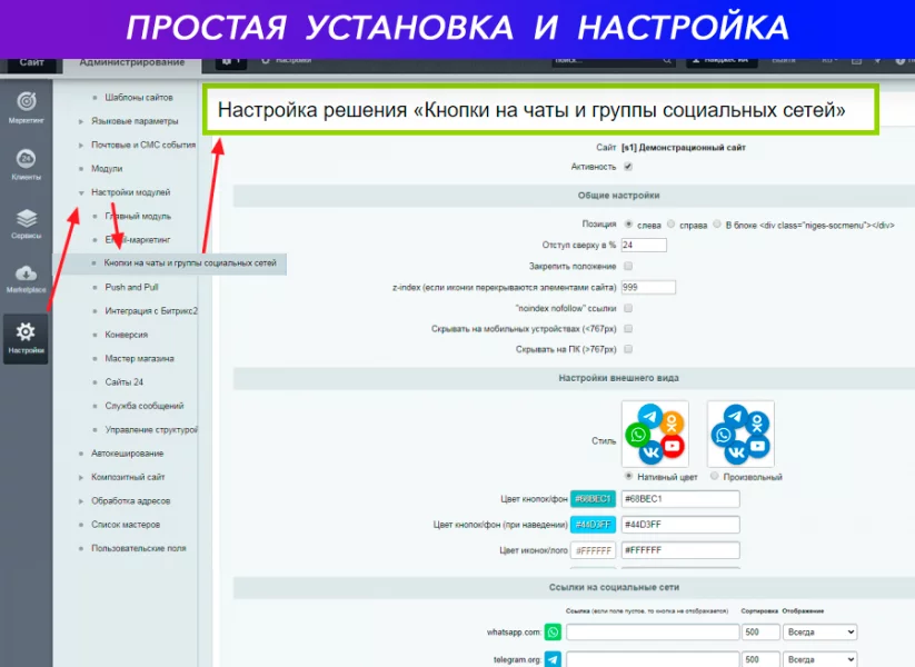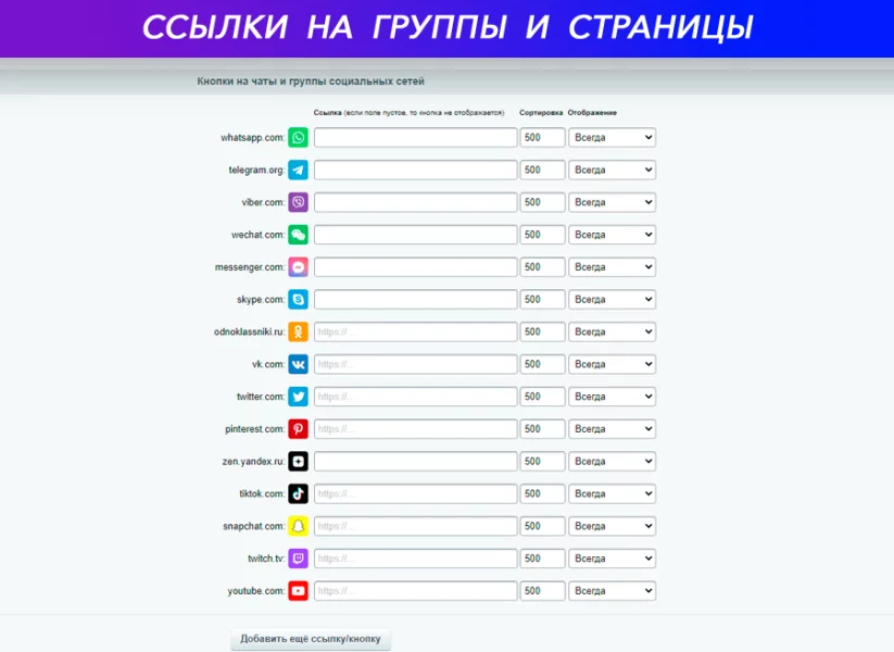 Кнопки на чаты и группы социальных сетей: ВКонтакте, Telegram, WhatsApp, Viber, Одноклассники...