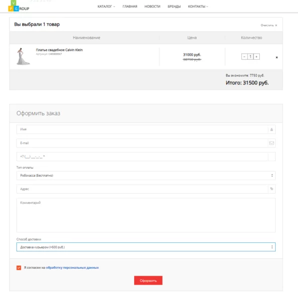 При выборе стандартного оформления заказа, вы увидите новую страницу. Здесь вам нужно будет выбрать тип плательщика, вариант оплаты и доставки заказа.