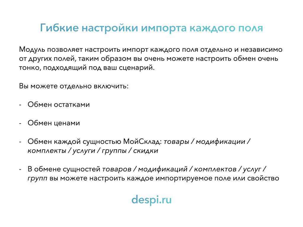 - работать только с измененными товарами в МС, тем самым нагрузка на ваш сайт будет минимальна