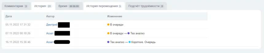 Логирование перемещения задач между колонками