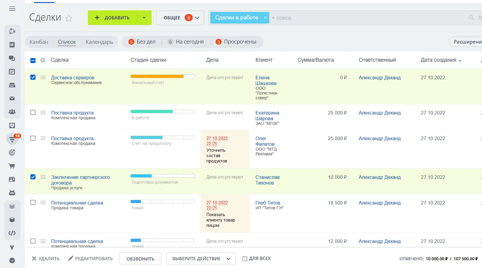 • Работа с заказами