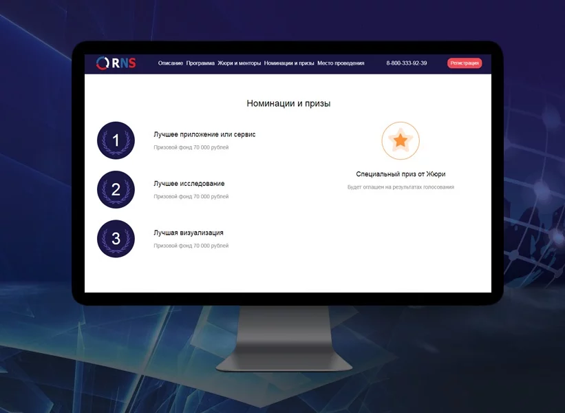Готовое решение для анонсирования и продвижения хакатона по разработке программных решений или IT-конкурса.
