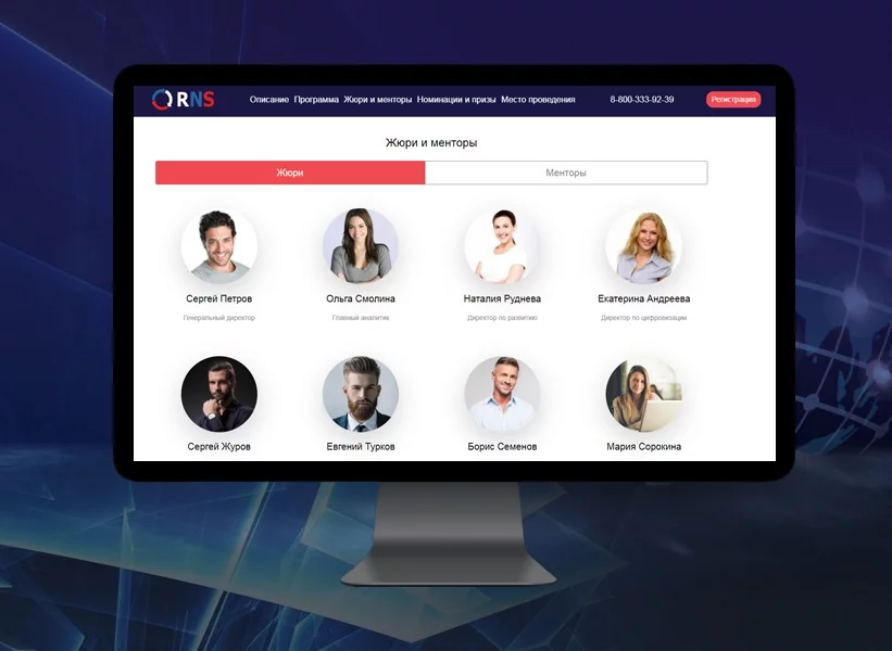 Жюри и менторыПредставление членов жюри, менторов или гостей мероприятия с фотографиями.Номинации и призы