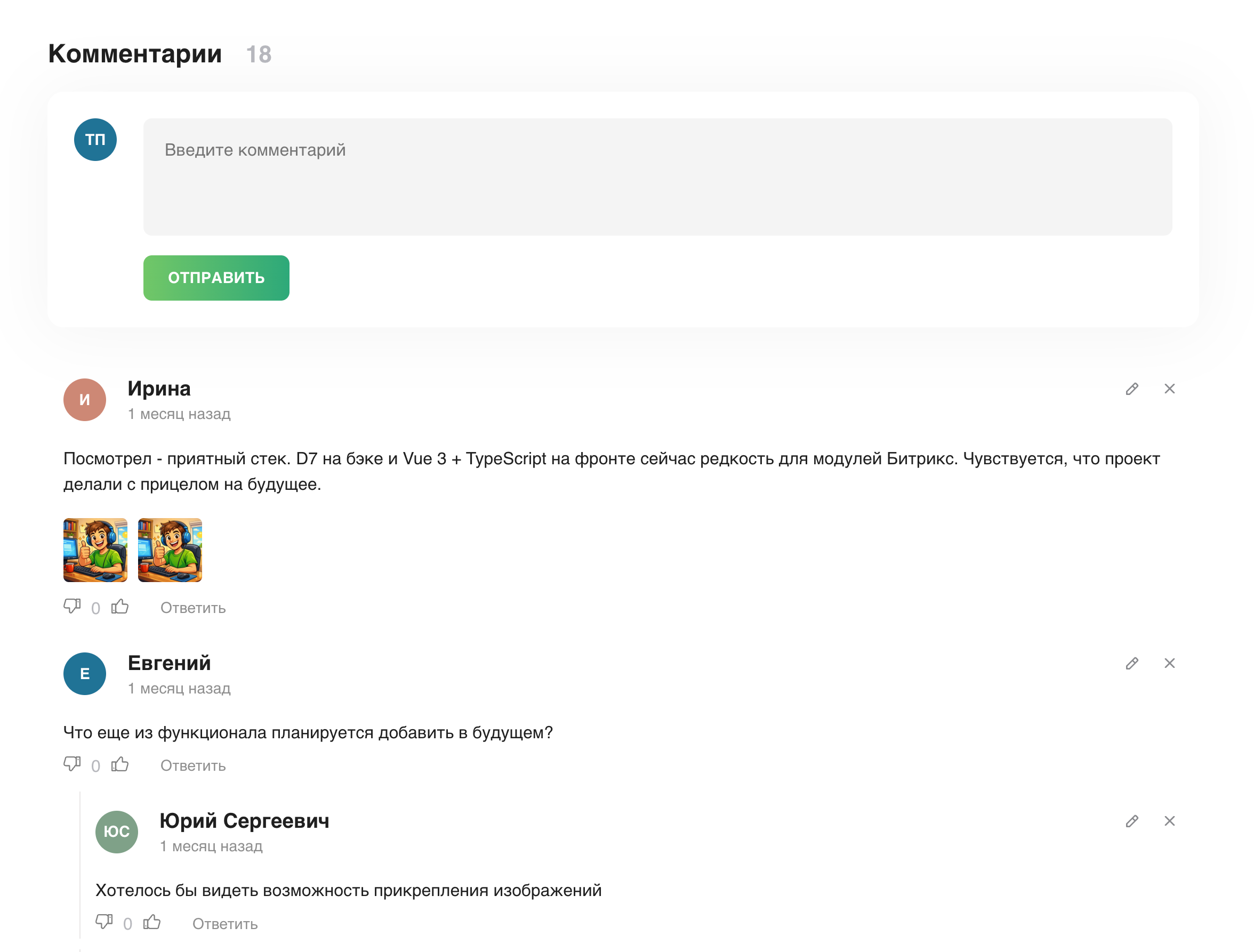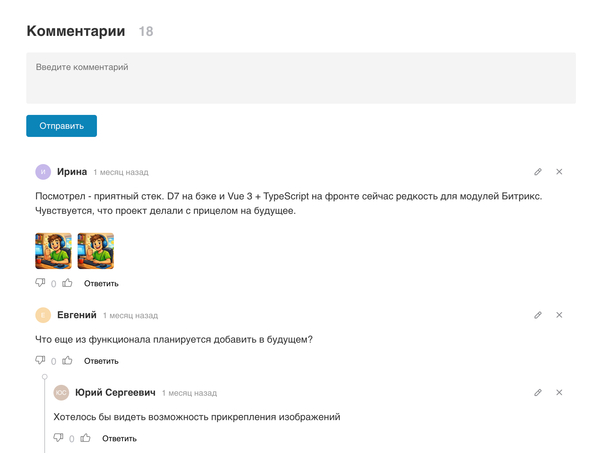 Универсальные комментарии для 1С-Битрикс с реактивным интерфейсом