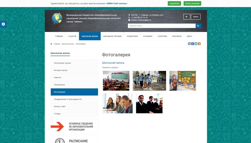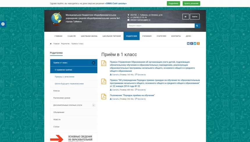 - Демонстрационная версия сайта http://school.sf2.simai.ru/