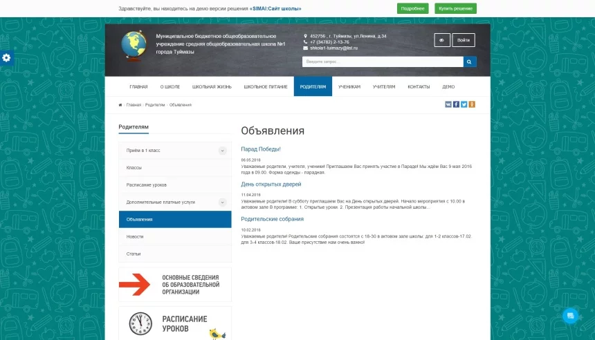 - Описание решения и примеры реализации http://simai.ru/solutions/obrazovatelnye-uchrezhdeniya/simai-sayt-shkoly/
