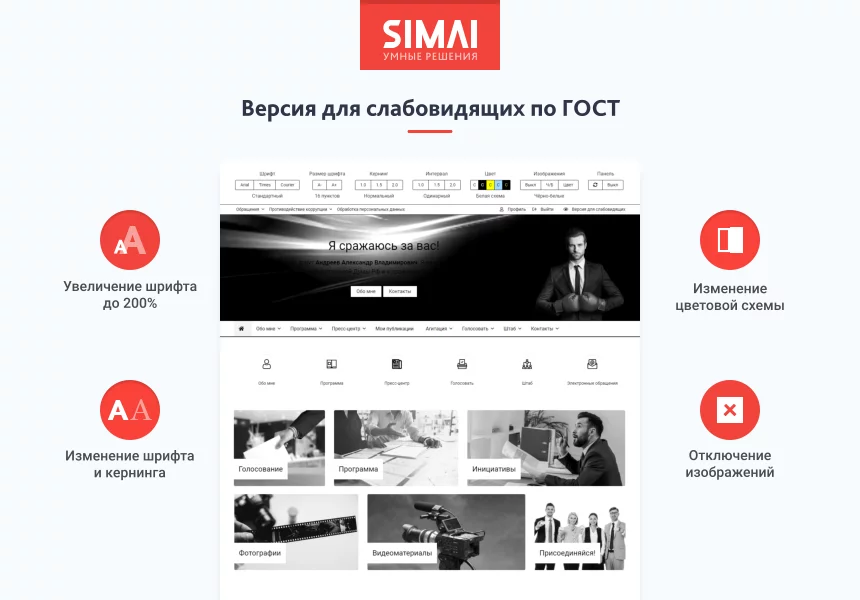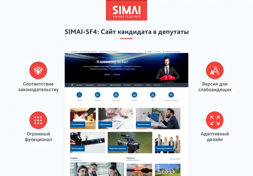 SIMAI-SF4: Сайт кандидата в депутаты – адаптивный с версией для слабовидящих