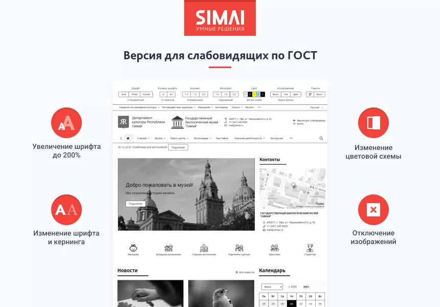 SIMAI-SF4: Сайт учреждения культуры - музея, адаптивный с версией для слабовидящих