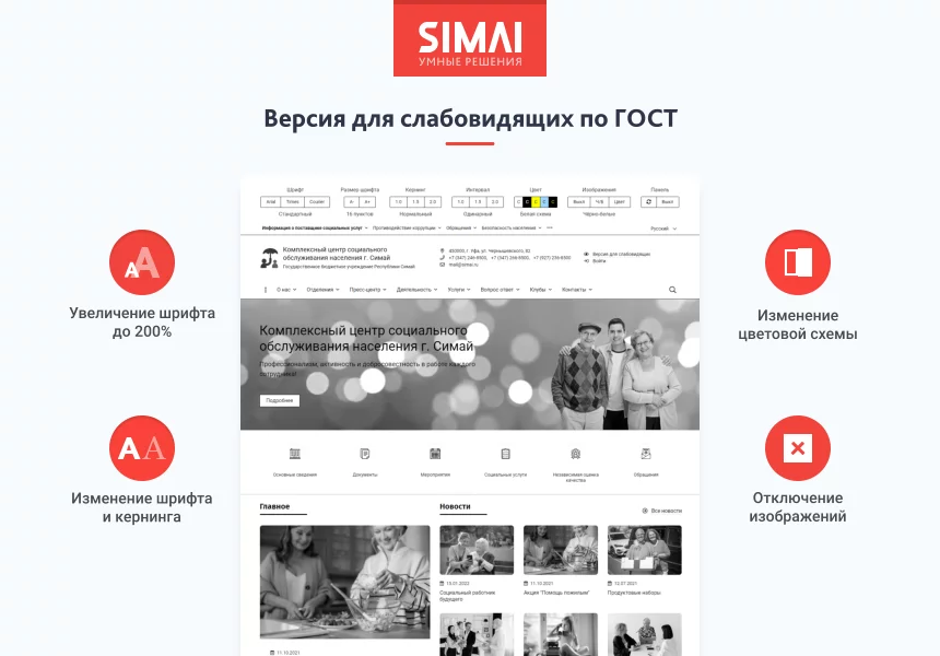 SIMAI-SF4: Сайт центра социального обслуживания - адаптивный с версией для слабовидящих