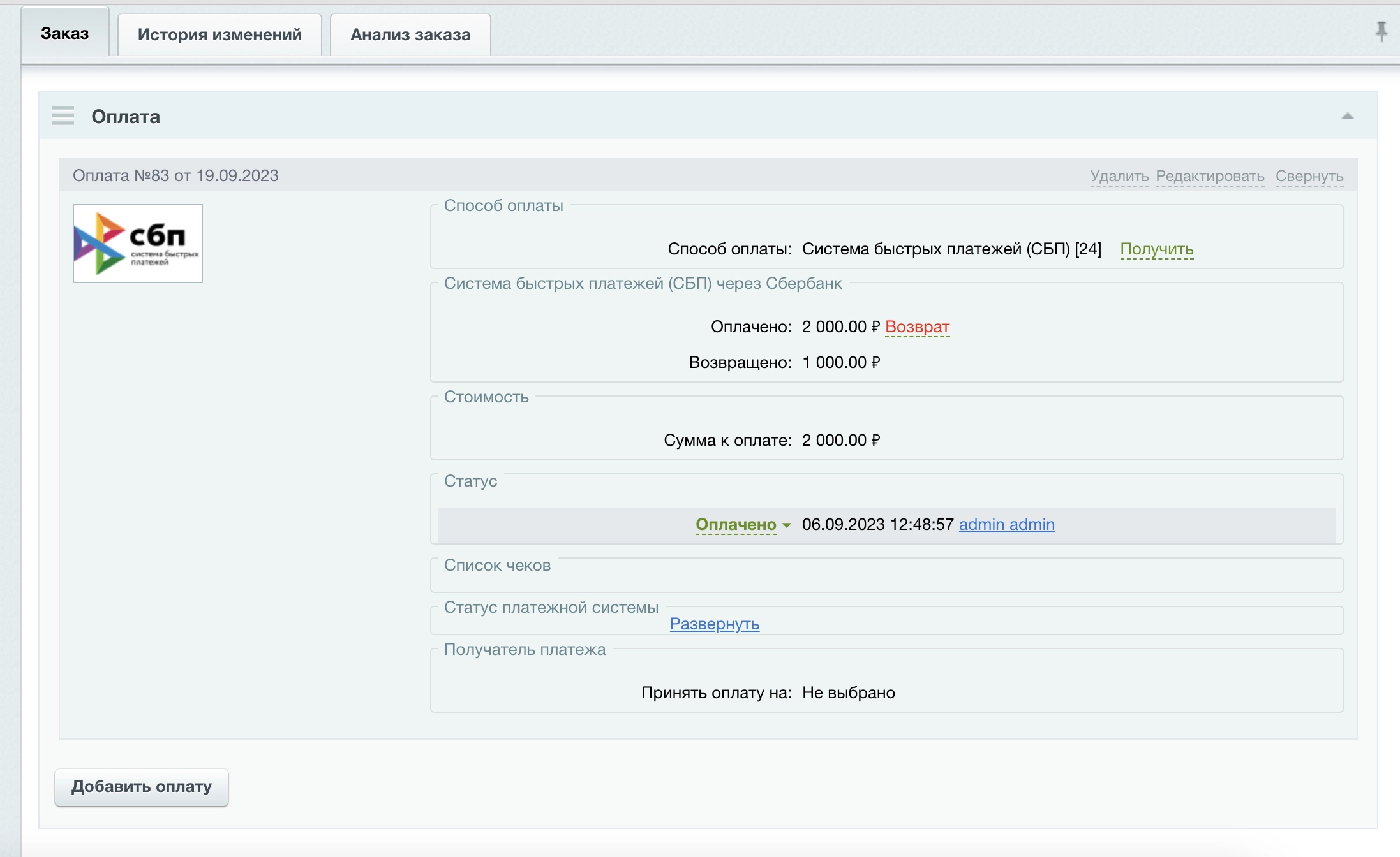 Система быстрых платежей (СБП) через Сбербанк Битрикс