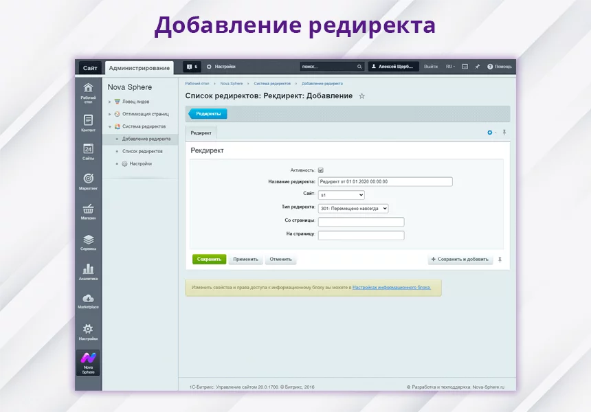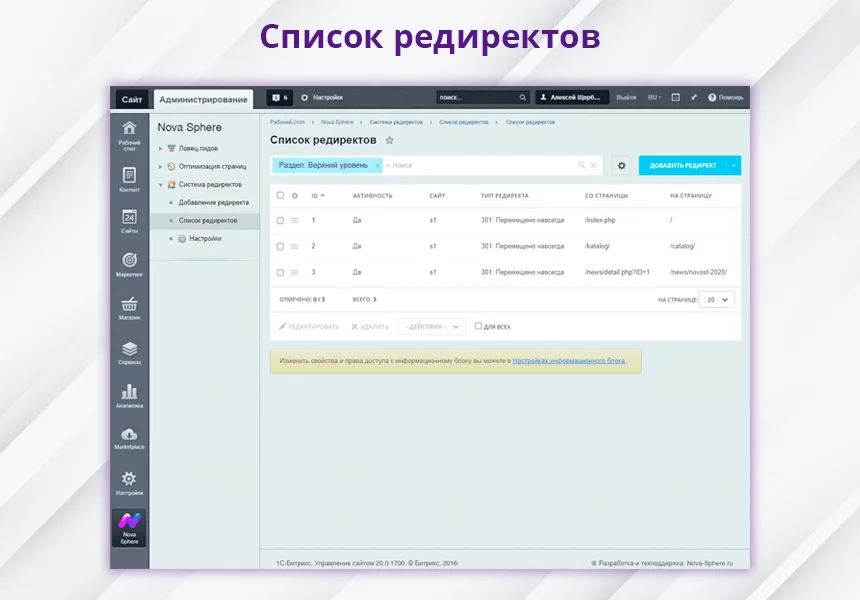 Nova Sphere: Система установки редиректов