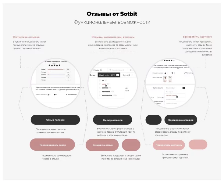 ![]() | Улучшение репутации и доверия. Система отзывов с продуманной модерацией и высоким качеством контента укрепляет репутацию интернет-магазина, что способствует привлечению новых клиентов. |