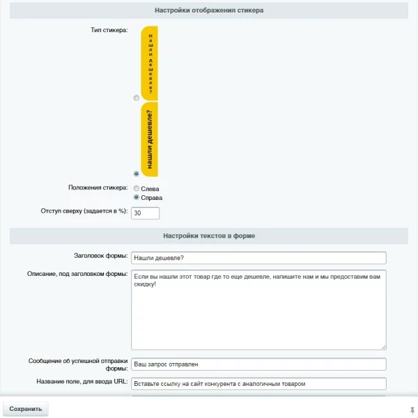 - Инпут с возможностью задать отступ сверху в процентах для стикера