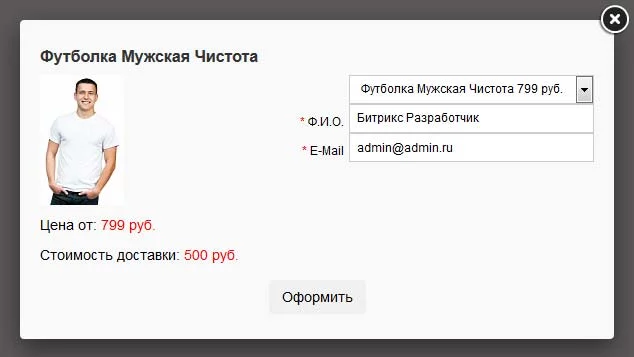 13) вывод в шаблоне всплывающего окна картинки товара, цены, стоимости доставки;