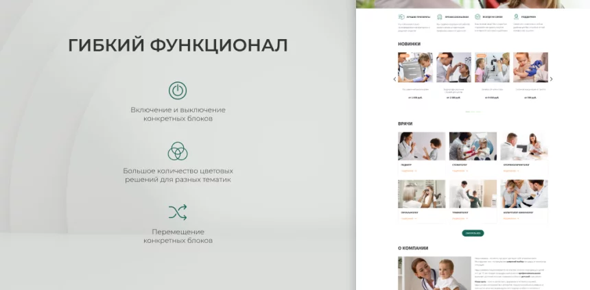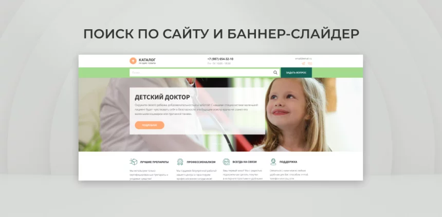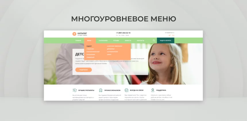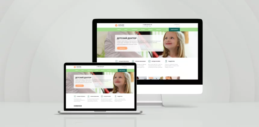 Универсальный корпоративный сайт с услугами детских врачей. Современный сайт со всем нужным функционалом идеально подойдет для клиник, специализирующаяся на услугах врачей:
