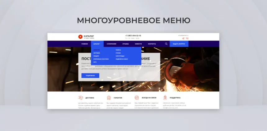 Универсальный корпоративный сайт с каталогом услуг. Современный сайт со всем нужным функционалом идеально подойдет для компании, работающей в сфере промышленности: