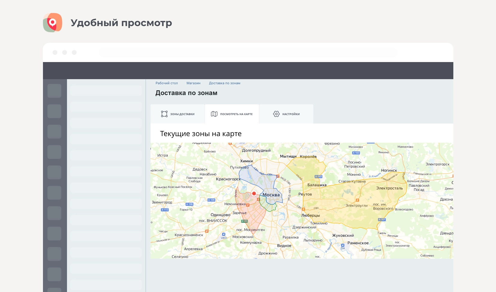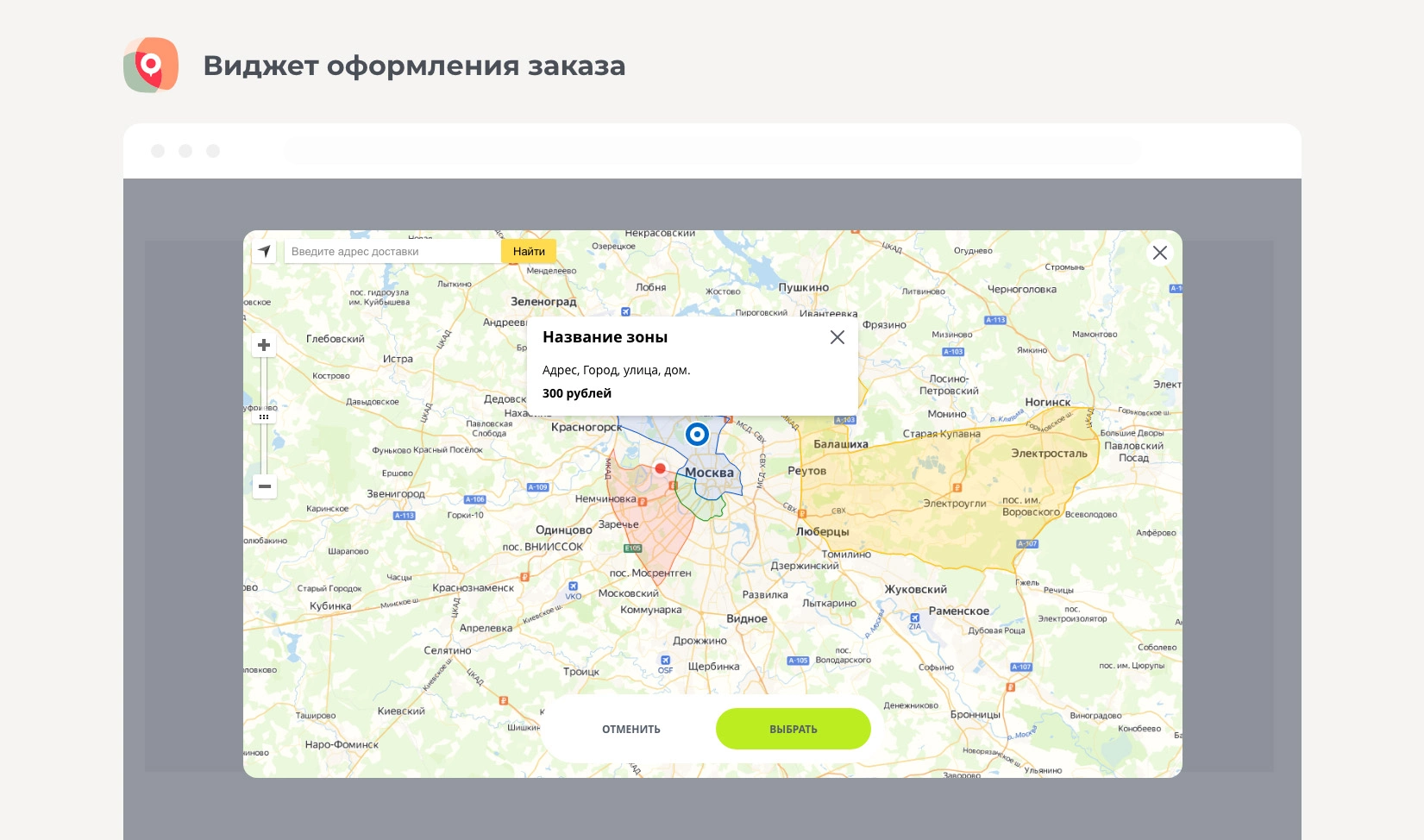 Модуль «Доставка по зонам» позволит вам организовать собственную доставку по зонам с автоматическим расчётом стоимости доставки.
