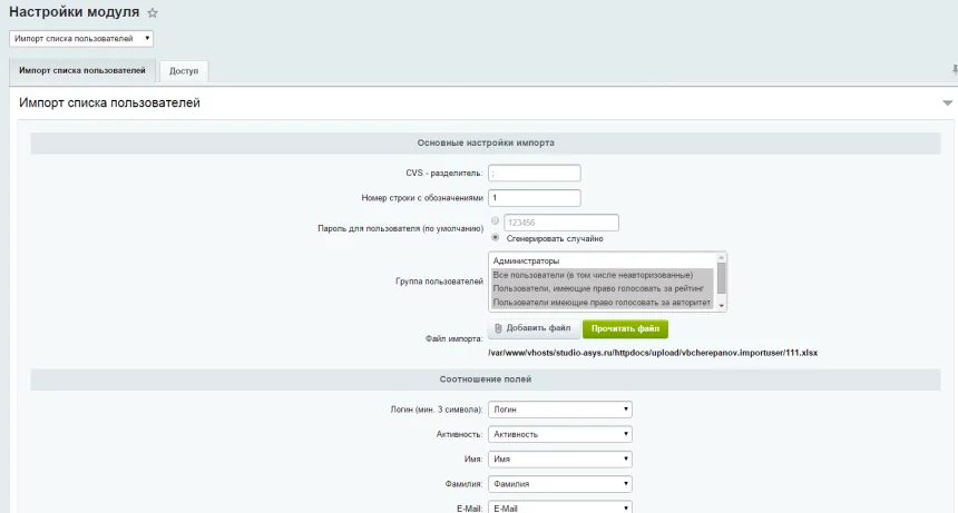 Импорт пользователей (csv/xlsx)