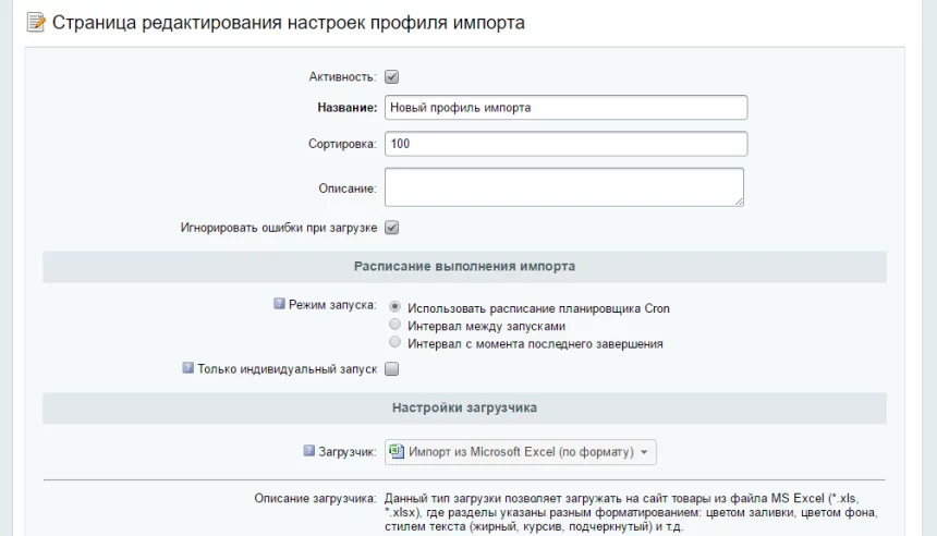 Модуль запускается автоматически, настроить расписание можно как удобно: например, каждую неделю, или каждый день, или даже два раза в день. Можно, например, запускать импорт вечером каждого воскресенья, или только по чётным дням месяца – всё это легко подстраивается под Вашу бизнес-логику.
