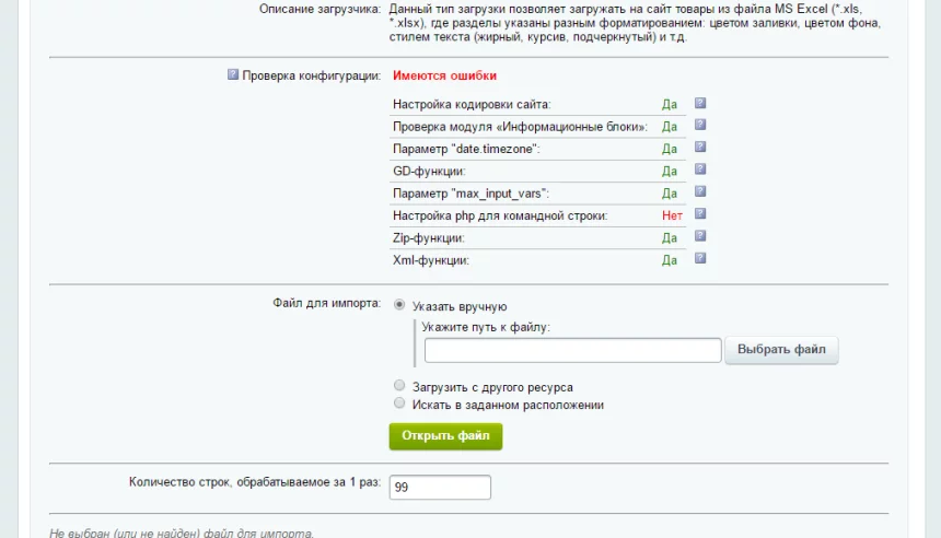 Модуль загружает большие каталоги, которые содержат тысячи и десятки тысяч товаров и разделов. Виртуальный хостинг не подходит для таких задач: во-первых, из-за ограничений по нагрузке, во-вторых из-за небольшого объема диска (мы рекомендуем иметь как минимум 20Гб свободного места перед началом загрузки). Поэтому необходимо использовать VPS или облачные серверы, мы рекомендуем Timeweb – это одни из лидеров на рынке, с высоким соотношением «цена-качество», на которых модуль работает без проблем.