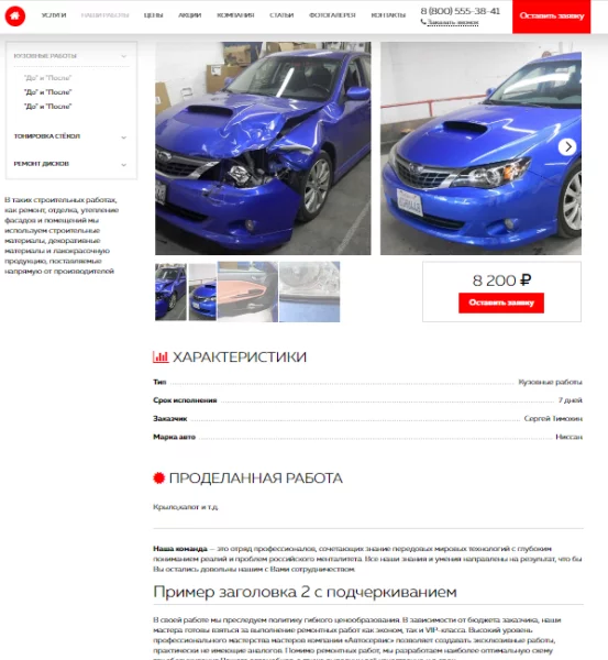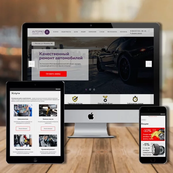 "Готовый сайт автосервис, шиномонтаж, тонировка стёкол, замена масла и др. Адаптивный" - это коробочное решение для создания корпоративного сайта для фирм и индивидуальных предпринимателей, занимающихся разного рода ремонтом автомобилей: начиная от тонировки стёкол и заканчивая капитальным ремонтом.