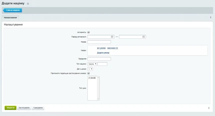 Дозволяє створювати автоматичні націнки на вартість товару