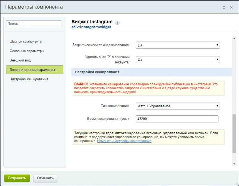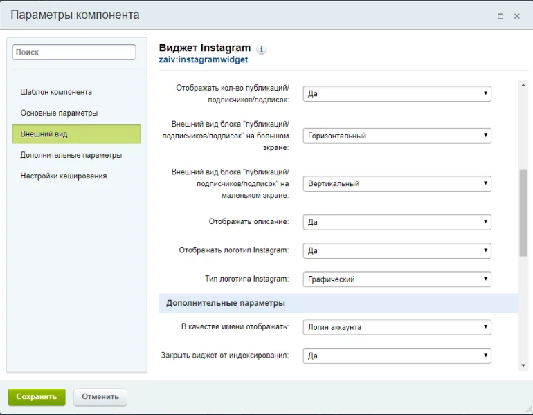Модуль позволяет отобразить на сайте профиль пользователя Instagram в виде адаптивного виджета.